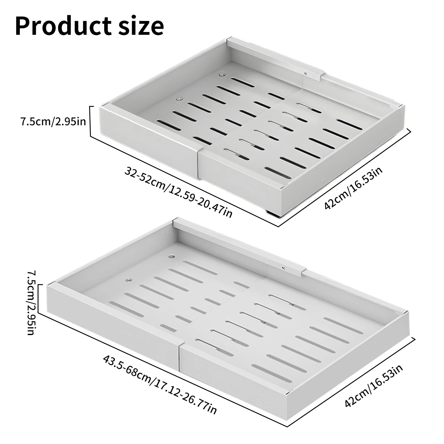 Transformez rapidement votre espace de rangement avec notre étagère coulissante gain de place, conçue pour s’adapter aux placards de cuisine, aux sous-éviers ou encore aux étagères du cellier. Grâce à ses rails coulissants et à son design extensible, elle maximise l’usage de vos meubles existants, sans outils ni perçage.