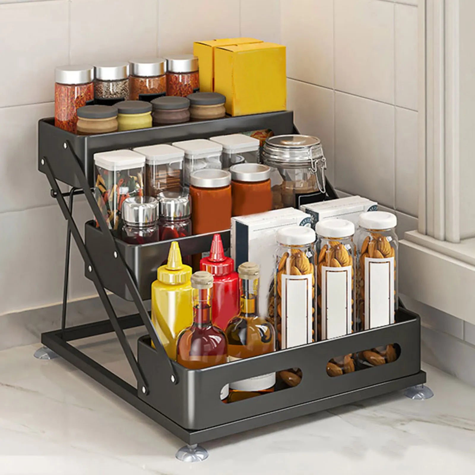- 3 étages pour trier sel, sucre, condiments, sauces et ingrédients de façon claire