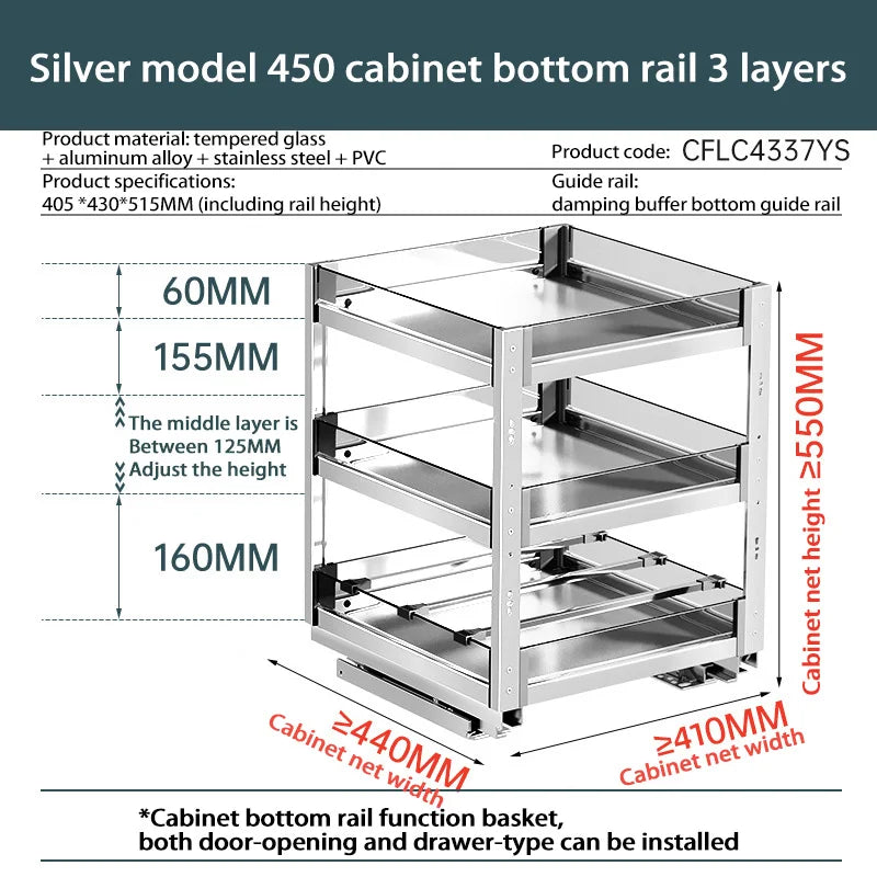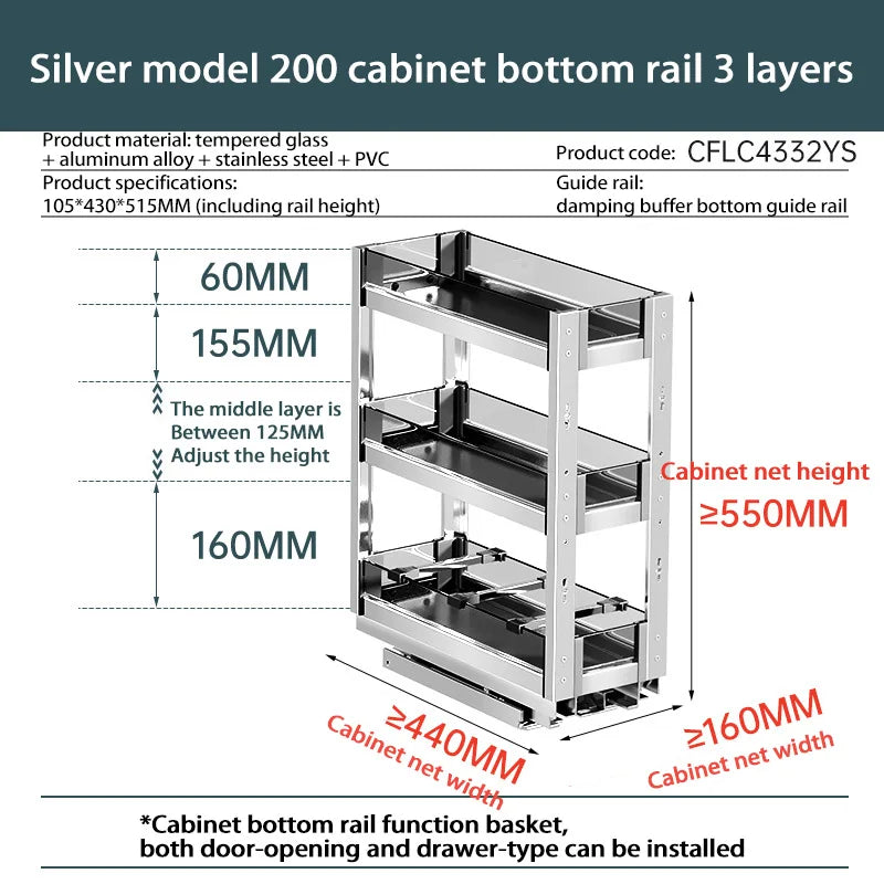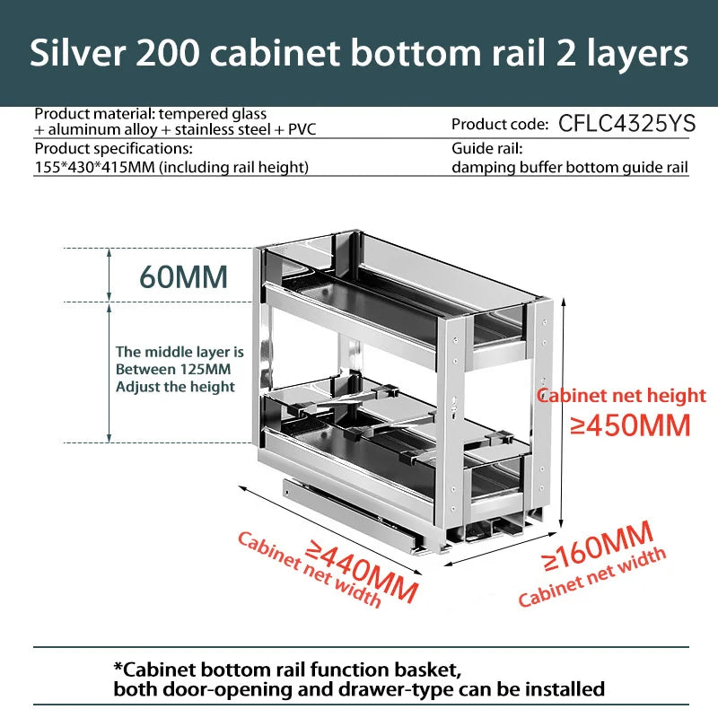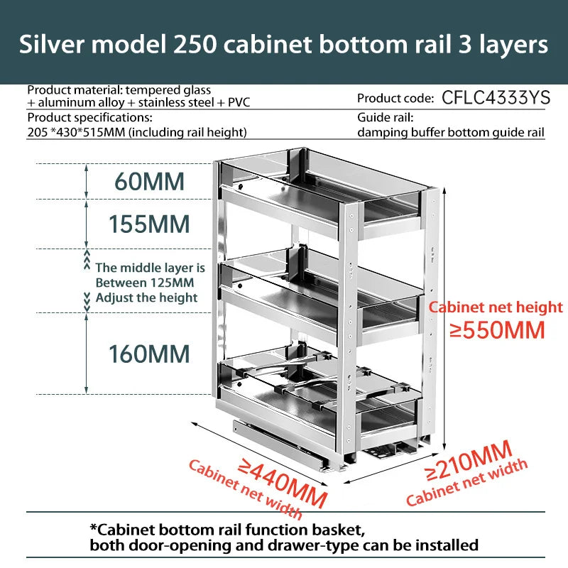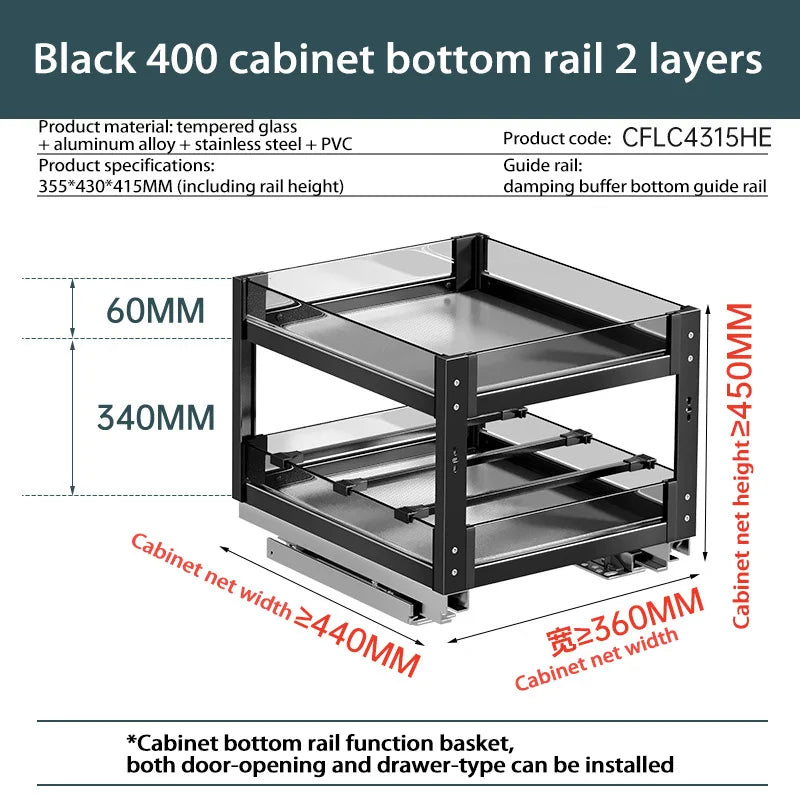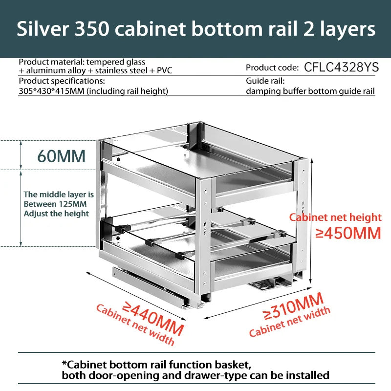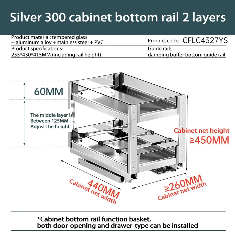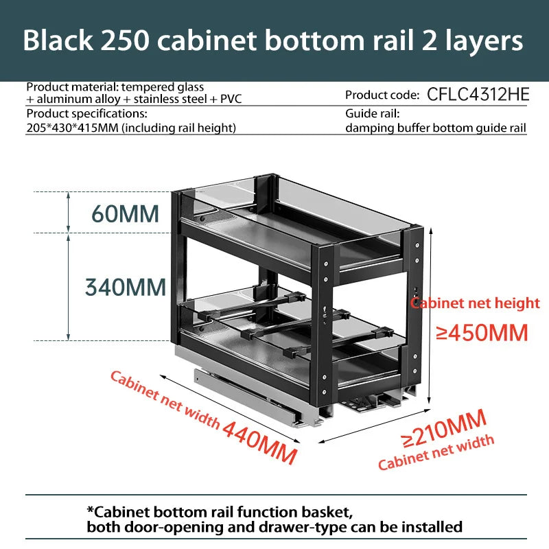 Disponible en 2 ou 3 niveaux, l’organiseur s’ajuste en hauteur selon vos besoins grâce à sa fonction "Adjust Up And Down". Que vous souhaitiez le glisser dans un tiroir de cuisine, un placard bas ou même sur le plan de travail, il s’intègre discrètement à tous les espaces grâce à ses finitions sobres disponibles en noir ou en argenté.