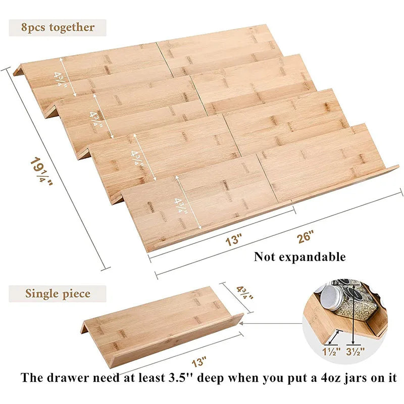 Range-épices en bambou pour tiroir de cuisine